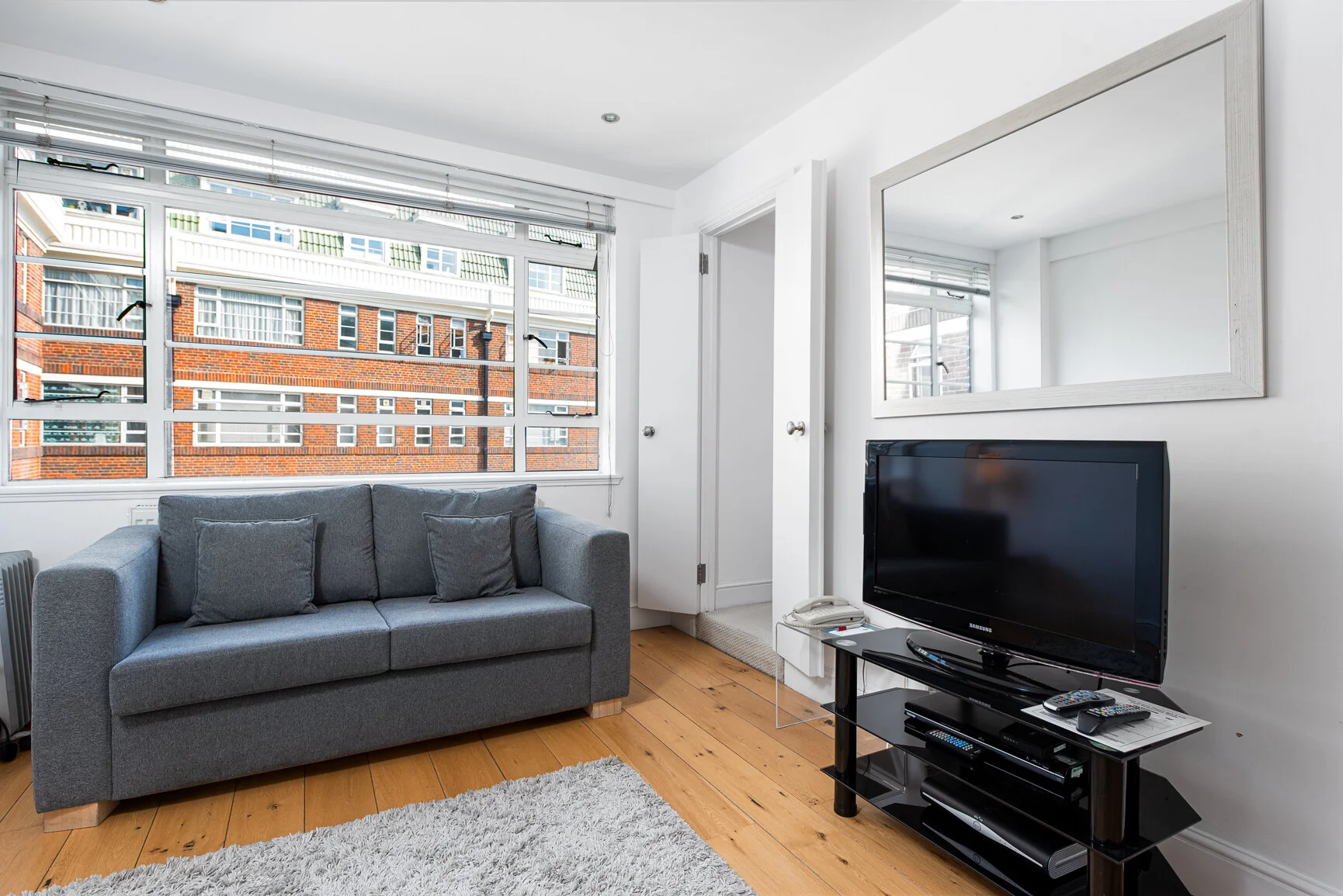 This luxury one-bedroom apartment is both attractive and welcoming. Renovated to the highest spec, its perfect for families and couples. The sofa can transform into a sofa-bed which can comfortably fit two adults.
