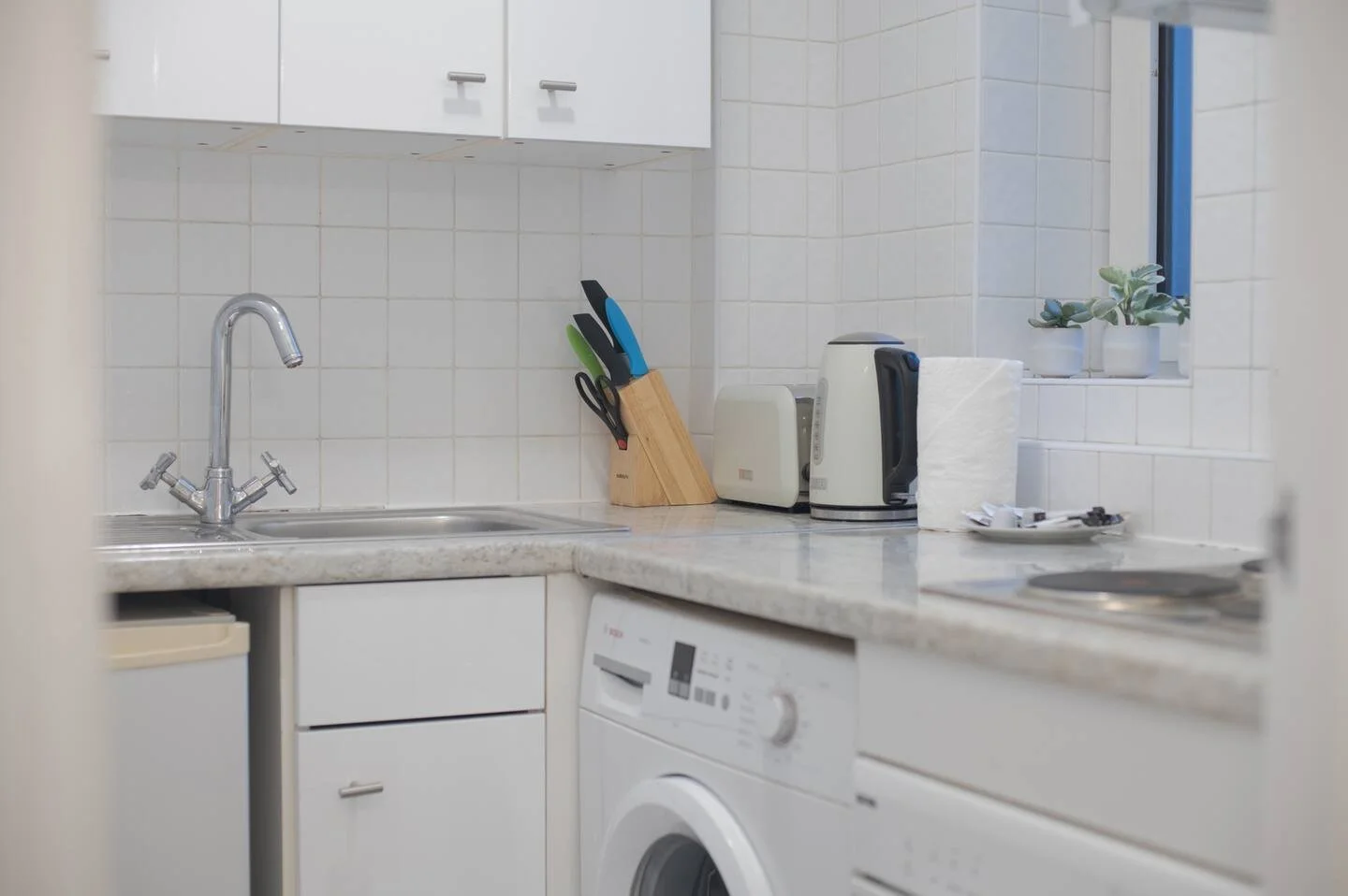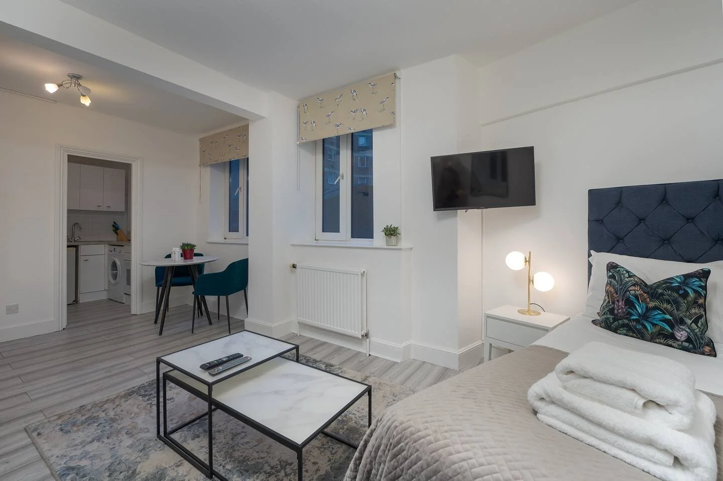 Apartment 4 is a bright and modern apartment on the ground floor of Chelsea Cloisters. The sofa can become a sofa-bed for 2 adults.